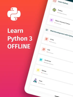 Become a Python 3 Programmer and start your python career. This app will make you a confident professional python programmer with excellent code examples and by building real python projects. This app will start from the basics of python language and go all the way to the advanced python concepts. This app have a robust python compiler where you can write real python code and compile it. So you can practice while learning python. Take a bit size of python 3 lesson from the app and then practice what you have learned in the compiler. And not just that, this app also have python quizzes, and not just python but also it's frameworks like Django, flask. These quizzes will help you in your learning journey and you can test your python knowledge.
