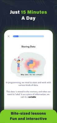 The course content is bite sized and helps you prepare for interviews or examinations. The app is suited for anyone who wants to get started with Python learning.