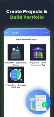 The app also covers real life projects so that you can master the programming language and prepare for job interviews or written tests. It's a must have app for students and working professionals.