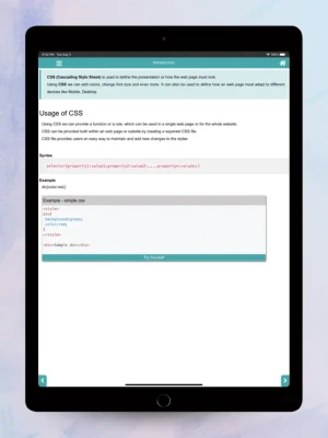 This app is well organized and easy to understand CSS language. The tutorial consists of lots of examples of how to use CSS.