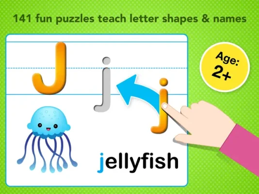 Learning ABCs has never been simpler! In this fun educational puzzle game, toddlers and preschoolers learn to recognize letter names, build familiarity with shapes of uppercase and lowercase letters, associate each letter with a variety of objects whose name begins with that letter, and spell basic words. By acquiring familiarity with letter names and shapes in this way, children develop a solid foundation for success on their early reading journey.