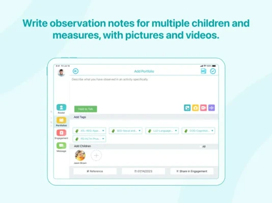 4. School admins and teachers can manage classrooms, import children and parents with ease and download portfolio reports in PDF form.