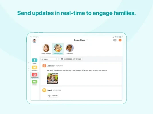 2. Share videobooks, photos, learning media videos, event reminders, and more with parents in real time through the app.