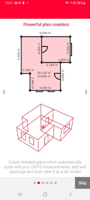 The Leica DISTO™ Plan app assists you with the vital task of documenting and visualizing your measurements. Fingers can be used to sketch a floor plan on a smartphone or tablet and corresponding measurements are easily assigned to each line of the plan. This way you can easily plan the next steps of your project.