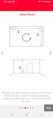Smart Room makes it possible to create accurate floor plans simply by taking clockwise or counterclockwise measurements of a room. Once all measurements are taken, the app automatically generates the plan. The diagonals feature will further enhance accuracy.