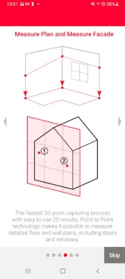 Generate accurate 3D plans and seamlessly integrate data into CAD. Leverage the power of P2P technology for real-time 3D measurement visualization directly at the project site. Measurements can be then exported as a DXF or DWG file. Alternatively, you can choose the PDF Pro export with all the detailed information and measurement workflow.