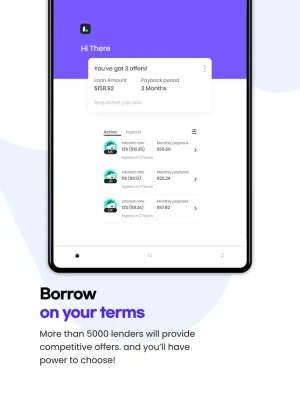 Since our app is not directly involved in the lending decision, we cannot guarantee the interest rate borrowers will be offered. All borrowers have the option to request a loan on our platform for up to a 12-month repayment period, paid in installments. Lenders can offer loans for a minimum of 3% APR based on the credit score and their own criteria. The lending decision is based on multiple factors viewable on our app, including credit, income, and cash flow analysis.