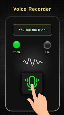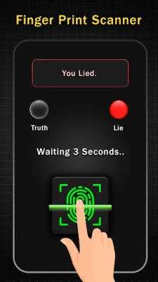 The application simulates a fingerprint lie detector. Have fun with your friends in this lie detector prank. Ask them a random question, then instruct them to place their finger on the screen to scan the fingerprint and answer. Our application will have a timeout that simulates the analysis. Then, the screen will display a message about whether you are telling the truth or lying. Imagine the look on people's faces when they believe you can tell if they're being honest or trying to cover up a lie.