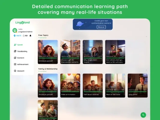 Lingoland is a comprehensive English learning app, designed to help you improve all your language skills – vocabulary, grammar, listening and speaking – through modern learning methods and advanced technology. With a friendly interface, rich content and personalized features, Lingoland offers an effective, enjoyable learning experience suitable for all levels, from beginners to those who want to perfect their English skills.