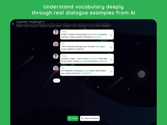 - Learn words in context: The feature of learning words through videos, articles, or real-life content helps you understand how to use words in real-life situations.