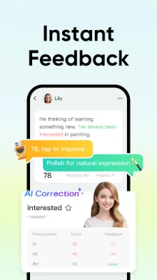 Say goodbye to face-to-face awkwardness and practice speaking through natural, chat-like interactions.AI provides real-time error correction, syllable-level scoring, and grammatical feedback to boost confidence and eliminate the fear of speaking mistakes.