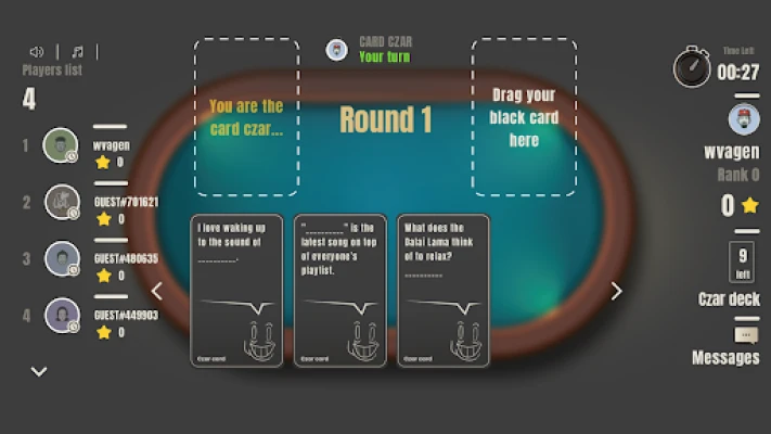 3.Create Your Own Cards: Add a personal touch to the game by creating your own custom cards. Share your unique sense of humor with your friends. Multiplayer Fun: Connect with up to 10 players in a single game for an epic laugh-fest.