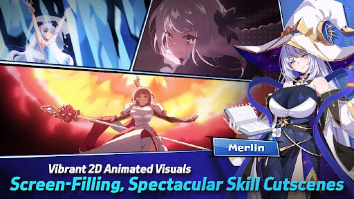 Visually enjoyable afk battles with detailed Anime LD character motions and spectacular skill cutscenes!