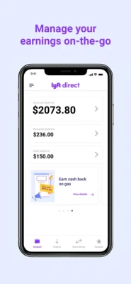 The Lyft Direct debit card is issued by Stride Bank, N.A., member FDIC, pursuant to a license by Mastercard International. Subject to eligibility. Optional services such as out-of-network ATM withdrawals and foreign transactions incur fees. For fee schedule, terms and conditions see the Stride Bank Account Agreement, Payfare Program Terms and E-SIGN Agreement, available in the Lyft Direct mobile app. Rewards categories and amounts subject to change without notice. Gas merchant classification is subject to Mastercard rules. Ride fare earnings will be sent after each ride. There may be instances where funding is delayed.