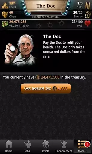 In Mafia Game you get to experience exciting adventure in the swinging 50s, as you climb the ladder rising from small time crook to Mafia boss. Collect experience and train your fighting skills in this role playing game in order to take out your unscrupulous rivals. You can form your own mob with friends to become stronger and to climb the high score lists.