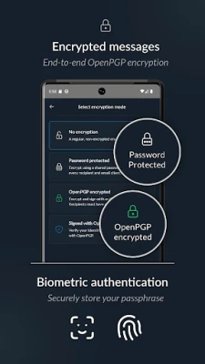 • Interoperable : User decides whether to encrypt emails or not. Interoperable with any other OpenPGP encrypted email.