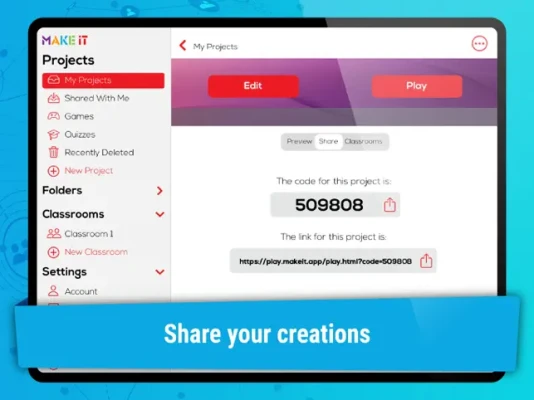 Create games, quizzes, activities and stories ... in just a few seconds! Play and share your creations with whoever you want, wherever you want. Make It is the perfect app for teachers, students, schools, educators and professionals.