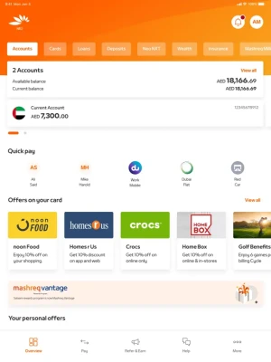1. Earn up to AED 5,000* Bonus: Enjoy a limited time offer of AED 5,000* bonus when you transfer your salary, refer friends, and transact with Mashreq NEO (*T&Cs apply).