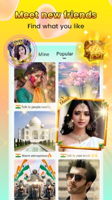 Join vibrant rooms by topic or region. Create your own room without restrictions. Expand your social circle through private chat, voice chat, live chat are supported on masti!.
