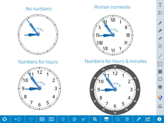 • Hide and reveal clocks with resizable covers to create your own problems and model strategies.
