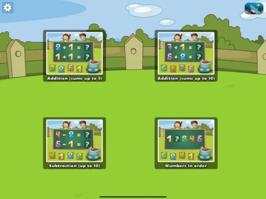- Addition (sums up to 5) - Addition (sums up to 10) - Subtraction (up to 10) - Numbers in order
