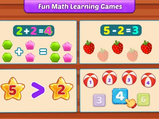 • Adding Puzzle - A fun mini-game where kids create math problems by dragging numbers on the screen.