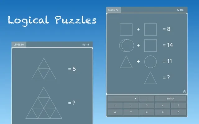 Math Riddles level up your IQ with a mix of logical puzzles. Challenge yourself with different levels of math games and stretch the limits of your mind. Brain games are prepared with an approach of an IQ test.