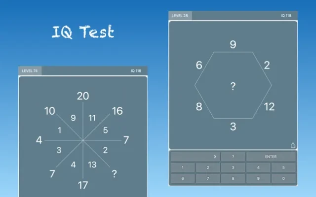 Brain games are prepared with an IQ test approach. You will solve the relationship between numbers in the geometrical figures, and complete the missing numbers at the end. Logical puzzles and math games have a different level and players who have strong analytical thinking ability, recognize the pattern immediately.