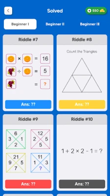 Each riddle in Math Me is designed to make you think differently. Some test logic, others pattern recognition or arithmetic — all spark curiosity and reward creative thinking.
