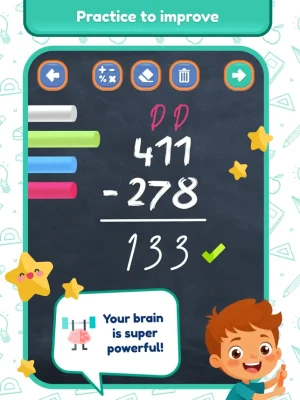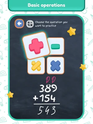 • Math Blackboard: Solve the operation by pressing the digits on the board and mark the correct result.