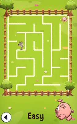 “Piggy Maze Runner” is a collection of 90 maze levels for young children, along with a delightful fairytale storyline. Piglet is on a super mission, he needs to save the pretty princess by solving different labyrinth puzzles. He could really use your help to find the way out of the puzzle and confront the strong wolf or the scary dragon. There’s a plot twist though. He needs to play the Rock-paper-scissors game and win - in order to defeat the opponent and save the lovely princess, Miss Piggy.