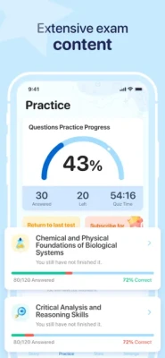 MCAT Prep 2024 not only helps you gain insight into concepts related to MCAT preparation, but also helps you increase your confidence in passing the test on your first attempt by practicing thousands of questions from similar tests.