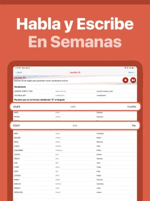 Cada lección de vocabulario incluye guías de pronunciación en audio para que puedas aprender
