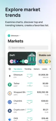 Create your Ethereum wallet, hold, send and receive ERC-20, ERC-721, ERC-1155 tokens and stablecoins, browse the decentralized web, use DeFi and Web3 sites.