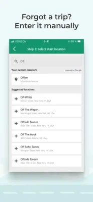 ※ Forgot to track travel during the day? Enter the start and end addresses of your drives and the app will do the rest for you.