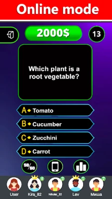 There is an online millionaire mode with friends where you will play with players from different countries and earn medals and cups. Prove to everyone that you are the smartest person on the planet - pump your brains.