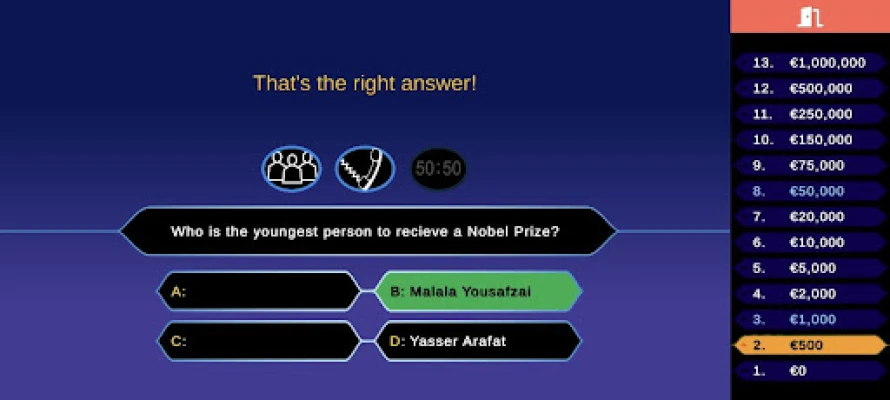 Millionaire game is an exciting game where you have to show your intelligence, education, general knowledge!.