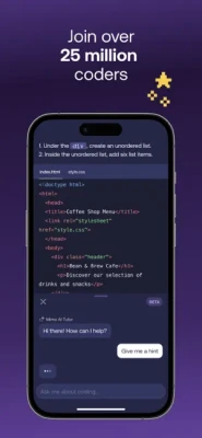 Code in Python, JavaScript, HTML, CSS, Swift, TypeScript, or SQL, and kickstart your career in Tech in 5 minutes a day! Whether you're an aspiring developer or just starting your coding journey in HTML, JavaScript, or other programming languages, the Mimo coding app is designed to make learning to code accessible, engaging, and effective. Learn to code in popular programming languages like Python or JavaScript and become a confident coder. Mimo offers free Python, JavaScript, HTML, Swift, CSS, SQL, and career courses to help you start a new Tech career. With the Mimo coding app, you can learn to code, practice your skills, advance your career, and become a developer. Learn coding in Python, TypeScript, JavaScript, HTML, SQL, and more at your own pace, and show your programming skills to the world. Everyone can learn the latest tech skills.