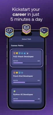 A new addition to our career paths: Back-End Developer path. Now, you can learn full-stack, front-end, back-end, or Python AI development to support your career growth.