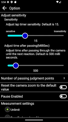 A. Please try to increase the value of sensitivity. Number to the left, which is displayed in the camera at the value, is the right sensitivity(threshold).Please set number of value is greater than the sensitivity only when the car was Tsu horizontal skills. In addition, I can also specify the maximum value of the millisecond intervals to get the lap. Car does not count the lap beside me skills within milliseconds that you specify, you can prevent inadvertent count.