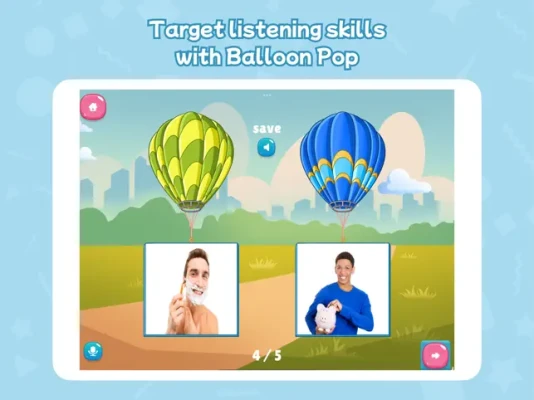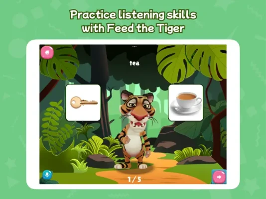 ● Work on auditory discrimination by playing the Balloon Pop and Feed the Tiger games.