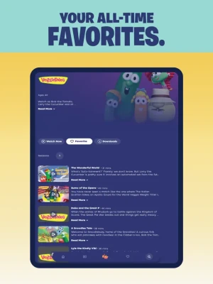 - 50+ episodes of VeggieTales with new releases ahead (US and Canada only), plus specially curated Silly Songs