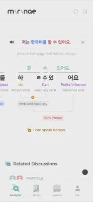 ◉ Let Mirinae be your AI Korean Teacher!You enter a Korean sentence and Mirinae will translate the sentence, show you all the individual parts of speech, find and explain any grammar patterns present, explain the particles and honorifics and verb conjugations, identify & explain any idioms or neologisms used, and draw out a parse-tree showing all the individual phrases & clauses in the sentence.
