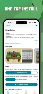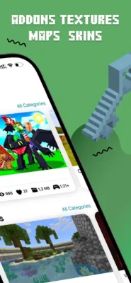 Install mods for Minecraft Pocket Edition! The application will provide you with a large collection of mods, addons, maps, skins, textures, seeds, and shaders for Minecraft PE.