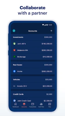- Integrations with Coinbase and Zillow to track crypto holdings and property value
