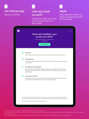 ¹Not all personal bank accounts are accepted for Money App’s Cash Advance product.