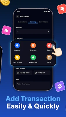 • Expense & Income Tracking - Record daily transactions with categories such as food, transport, shopping, bills, entertainment, and more.