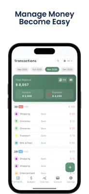 Take charge of your money with Money Manager — a simple, private budget planner and expense tracker that works entirely offline. No sign-ups, no cloud, no ads tracking you. Just you and your finances.