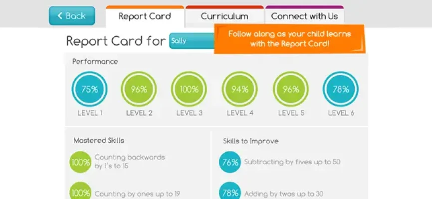 PARENT REPORTING: Includes a Report Card section where parents and teachers can monitor progress for each child and learn about new skill-building activities.