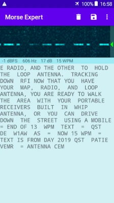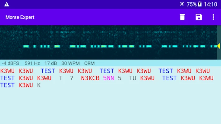 Decodes Morse Code audio to text. Optimized for decoding weak, fading signals in the noise and interference, especially on the Amateur Radio bands. Optionally highlights Ham callsigns and keywords. The audio may come either from the built-in microphone or from another device, such as a radio, via an audio cable. Decoding is performed using the same algorithms as used in CW Skimmer.